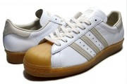 アディダスのクラシックなフォルムで、今だ絶大な人気を誇るスーパースターより、80年代に製造されたフランス製モデル"FRANCE MADE"を忠実に再現した話題のSUPERSTAR 80'sヴィンテージモデルから2013年最新モデルが登場!!ソールやシェルトゥ(つま先)の質感、サイドアッパーの鋭角なステッチ、ネームシールが貼られたスウェードインソールなど細部まで忠実に再現したこだわりの仕上がり!!また、今作はアッパーにホワイトカラーで落ち着いた配色に仕上げ、ソールにはシェルトゥにかけてまでガムソールを採用した絶妙なディティール!!当時を知る方にとっては涙モノのコレクションです!!大人気間違いなし!!急げ!!